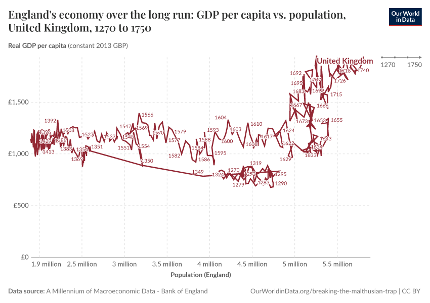Max Roser (2020) - “Breaking out of the Malthusian trap: How pandemics allow us to understand why our ancestors were stuck in poverty” Published online at OurWorldinData.org. Retrieved from: 'https://data-archive-fasttrack-step.owid.pages.dev:8789/20251125-173858/breaking-the-malthusian-trap.html' [Online Resource] (archived on November 25, 2025).BibTeX citation