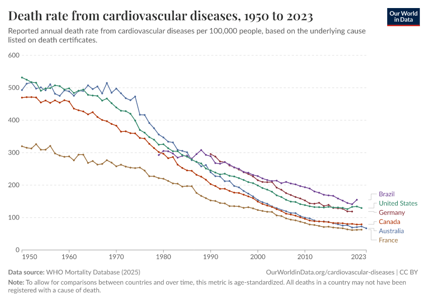 Saloni Dattani (2025) - “Death rates from cardiovascular disease have fallen dramatically — what were the breakthroughs behind this?” Published online at OurWorldinData.org. Retrieved from: 'https://data-archive-fasttrack-step.owid.pages.dev:8789/20260119-084543/cardiovascular-deaths-decline.html' [Online Resource] (archived on January 19, 2026).BibTeX citation