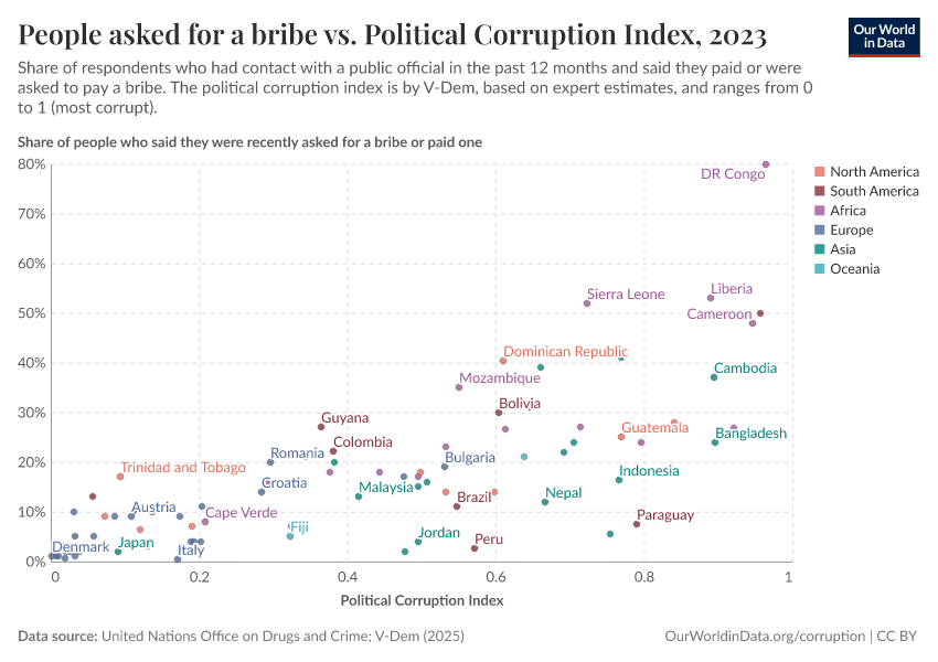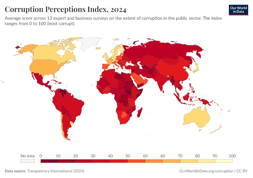 Bastian Herre, Veronika Samborska, and Esteban Ortiz-Ospina (2016) - “Corruption” Published online at OurWorldinData.org. Retrieved from: 'https://data-archive-fasttrack-step.owid.pages.dev/corruption' [Online Resource]BibTeX citation