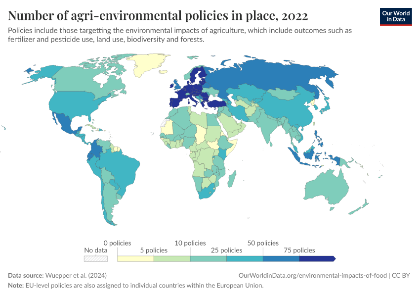 Hannah Ritchie (2024) - “How effective are policies in reducing the environmental impacts of agriculture?” Published online at OurWorldinData.org. Retrieved from: 'https://data-archive-fasttrack-step.owid.pages.dev:8789/20260301-083443/effective-policies-reducing-environmental-impacts-agriculture.html' [Online Resource] (archived on March 1, 2026).BibTeX citation