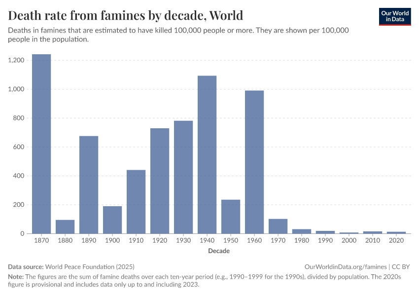 Bastian Herre, Veronika Samborska, Joe Hasell, and Max Roser (2017) - “Famines” Published online at OurWorldinData.org. Retrieved from: 'https://data-archive-fasttrack-step.owid.pages.dev/famines' [Online Resource]BibTeX citation