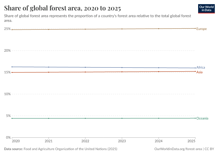 Hannah Ritchie (2021) - “Forest area” Published online at OurWorldinData.org. Retrieved from: 'https://data-archive-fasttrack-step.owid.pages.dev:8789/20260226-122020/forest-area.html' [Online Resource] (archived on February 26, 2026).BibTeX citation