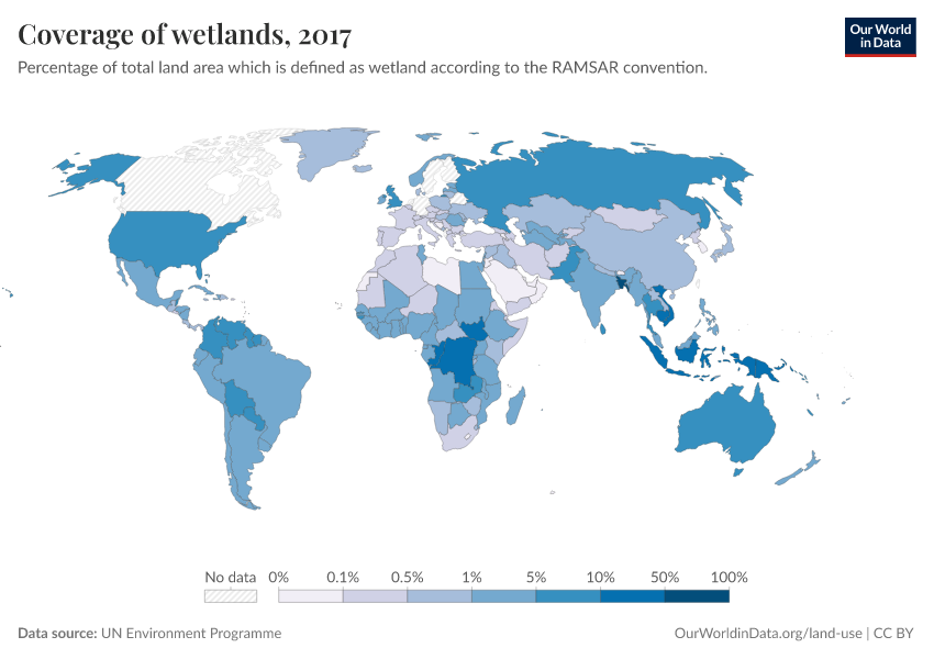 “Data Page: Coverage of wetlands”. Our World in Data (2026). Data adapted from UN Environment Programme. Retrieved from https://data-archive-fasttrack-step.owid.pages.dev:8789/20260130-180113/grapher/coverage-of-wetlands.html [online resource] (archived on January 30, 2026).How to cite this data