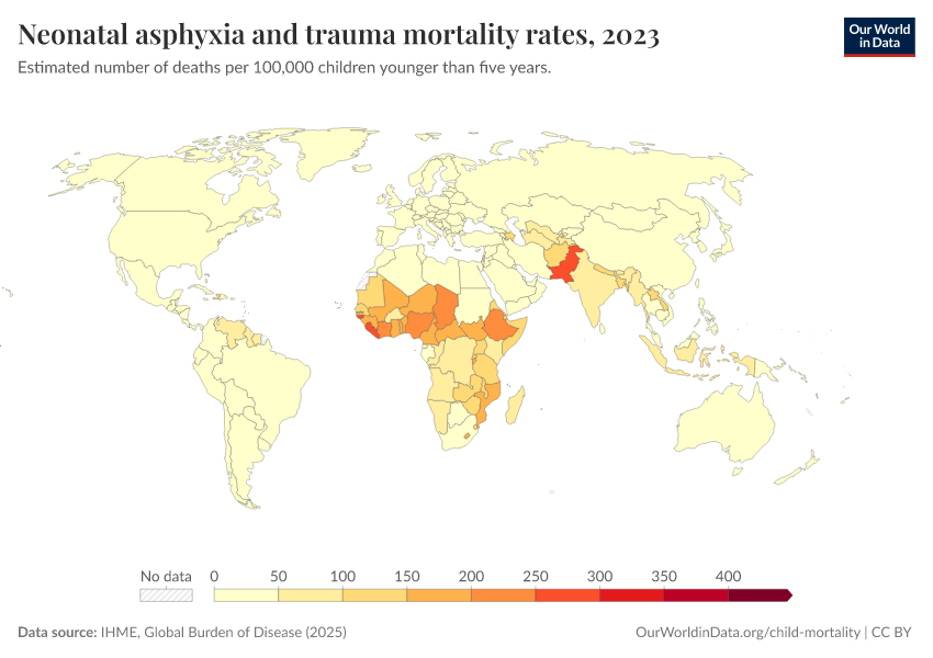 IHME, Global Burden of Disease (2025) – with major processing by Our World in Data. “Neonatal asphyxia and trauma mortality rates” [dataset]. IHME, Global Burden of Disease, “Global Burden of Disease - Deaths” [original data]. Retrieved March 2, 2026 from https://data-archive-fasttrack-step.owid.pages.dev:8789/20260211-174736/grapher/mortality-neonatal-asphyxia-and-trauma.html (archived on February 11, 2026).