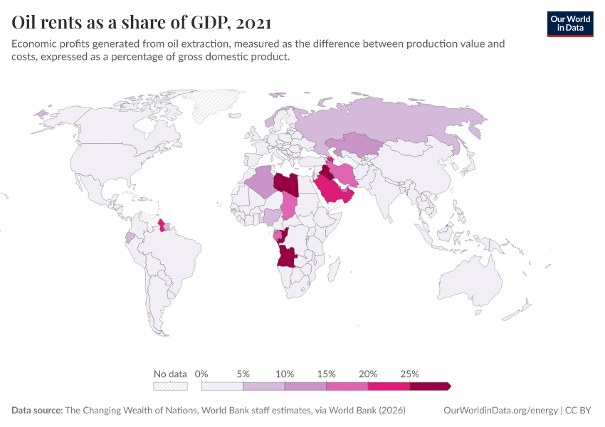 “Data Page: Oil rents as a share of GDP”. Our World in Data (2026). Data adapted from The Changing Wealth of Nations, World Bank staff estimates, via World Bank. Retrieved from https://data-archive-fasttrack-step.owid.pages.dev:8789/20260301-083443/grapher/oil-rents-as-a-share-of-gdp.html [online resource] (archived on March 1, 2026).How to cite this data