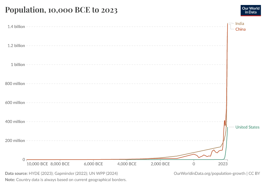 “Data Page: Population”, part of the following publication: Hannah Ritchie, Lucas Rodés-Guirao, Edouard Mathieu, Marcel Gerber, Esteban Ortiz-Ospina, Joe Hasell, and Max Roser (2023) - “Population Growth”. Data adapted from PBL Netherlands Environmental Assessment Agency, Gapminder, United Nations. Retrieved from https://data-archive-fasttrack-step.owid.pages.dev:8789/20260119-065148/grapher/population.html [online resource] (archived on January 19, 2026).How to cite this data