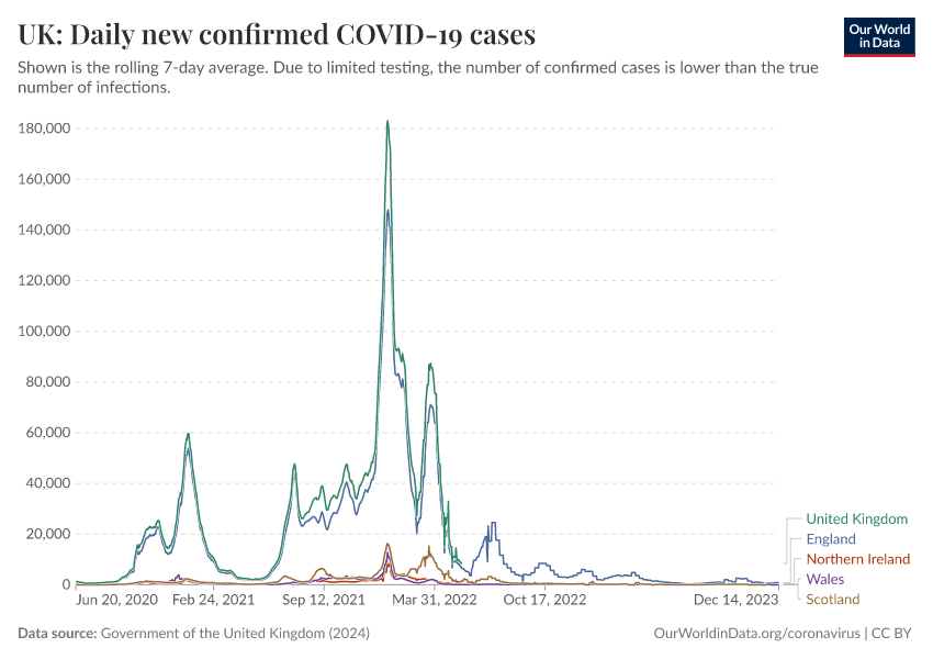 Government of the United Kingdom (2024) – with minor processing by Our World in Data. “UK: Daily new confirmed COVID-19 cases” [dataset]. Government of the United Kingdom, “UKHSA data dashboard” [original data]. Retrieved March 2, 2026 from https://data-archive-fasttrack-step.owid.pages.dev:8789/20250909-093708/grapher/uk-daily-new-covid-cases.html (archived on September 9, 2025).