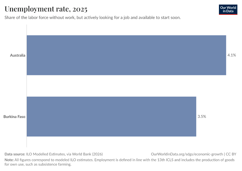 ILO Modelled Estimates, via World Bank (2026) – processed by Our World in Data. “Unemployment rate – ILO” [dataset]. ILO Modelled Estimates, via World Bank, “World Development Indicators 125” [original data]. Retrieved March 2, 2026 from https://data-archive-fasttrack-step.owid.pages.dev:8789/20260301-083443/grapher/unemployment-rate.html (archived on March 1, 2026).
