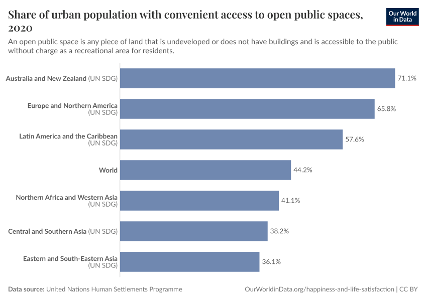 Definition of the SDG indicator: Indicator 11.7.1 is the “average share of the built-up area of cities that is open space for public use for all, by sex, age and persons with disabilities” in the UN SDG framework.