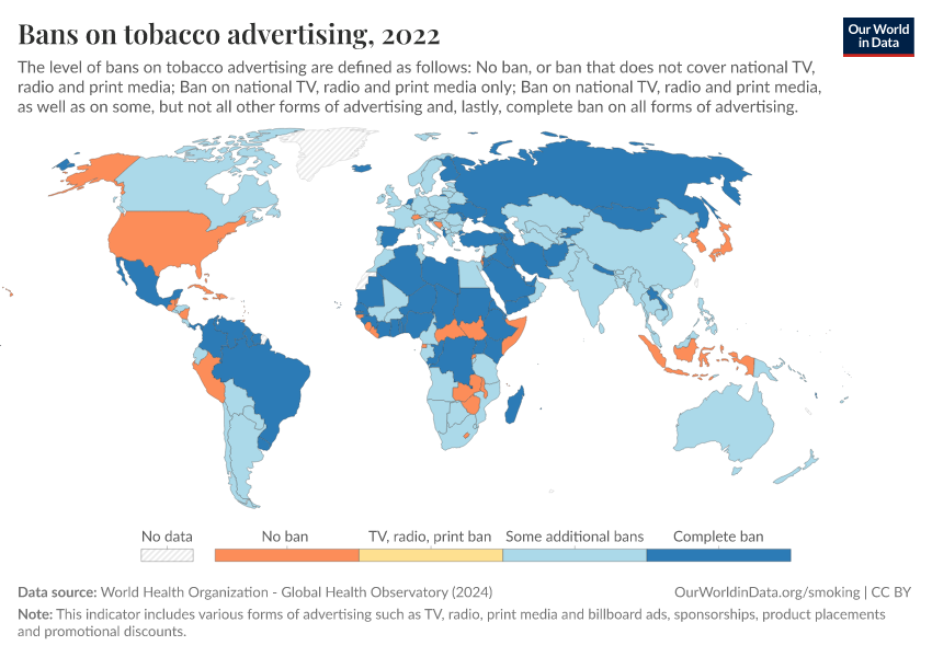 Hannah Ritchie and Max Roser (2023) - “Smoking” Published online at OurWorldinData.org. Retrieved from: 'https://data-archive-fasttrack-step.owid.pages.dev/smoking' [Online Resource]BibTeX citation