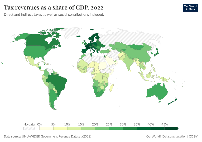 The visualization shows a map of total tax revenues, expressed as a share of GDP.