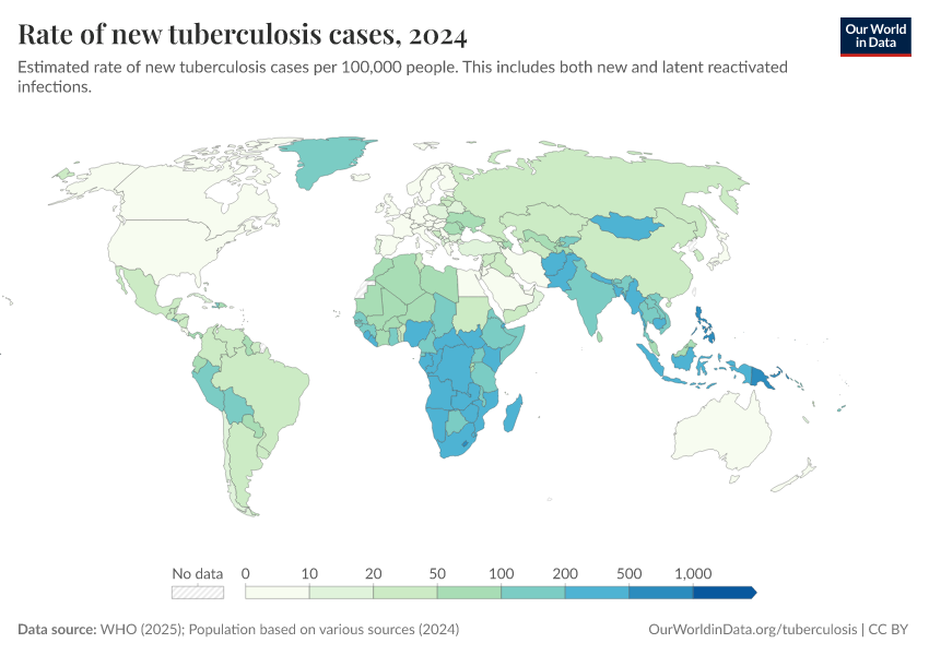 Saloni Dattani, Fiona Spooner, Hannah Ritchie, and Max Roser (2023) - “Tuberculosis” Published online at OurWorldinData.org. Retrieved from: 'https://data-archive-fasttrack-step.owid.pages.dev/tuberculosis' [Online Resource]BibTeX citation